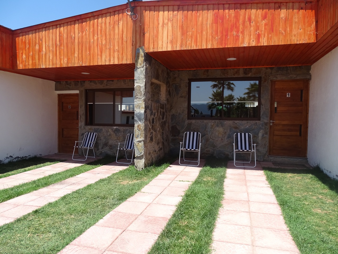 Nuestro Centro Recreativo en la actualidad cuenta con 6 cabañas familiares y 7 de tipo matrimonial, todas son de construcción sólida, totalmente equipadas con cocina americana, TV de 40” satelital (Direc TV) y dormitorio matrimonial en suite.